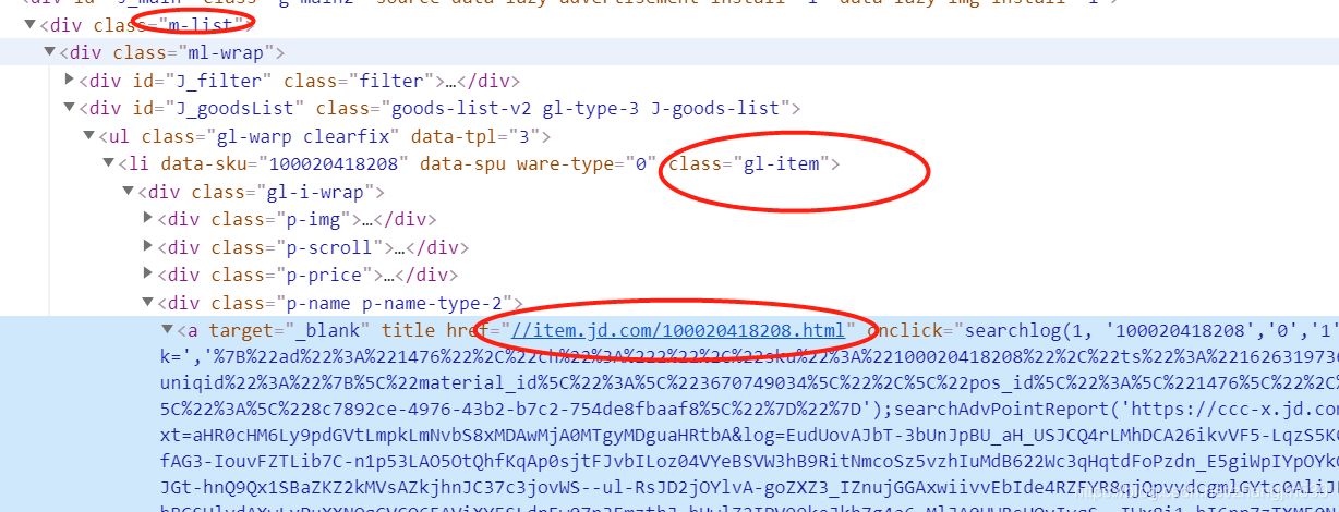 通过对页面进行分析,我们可以找到商品详情页的URL信息。