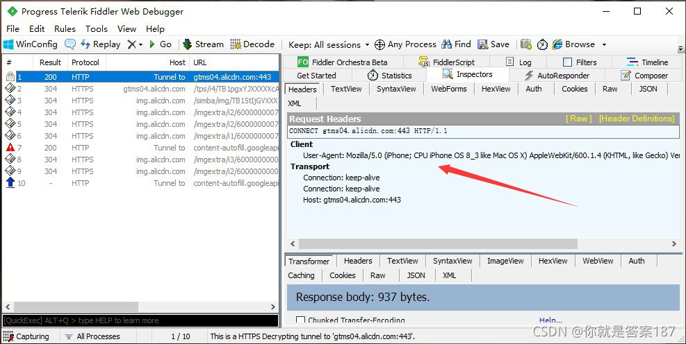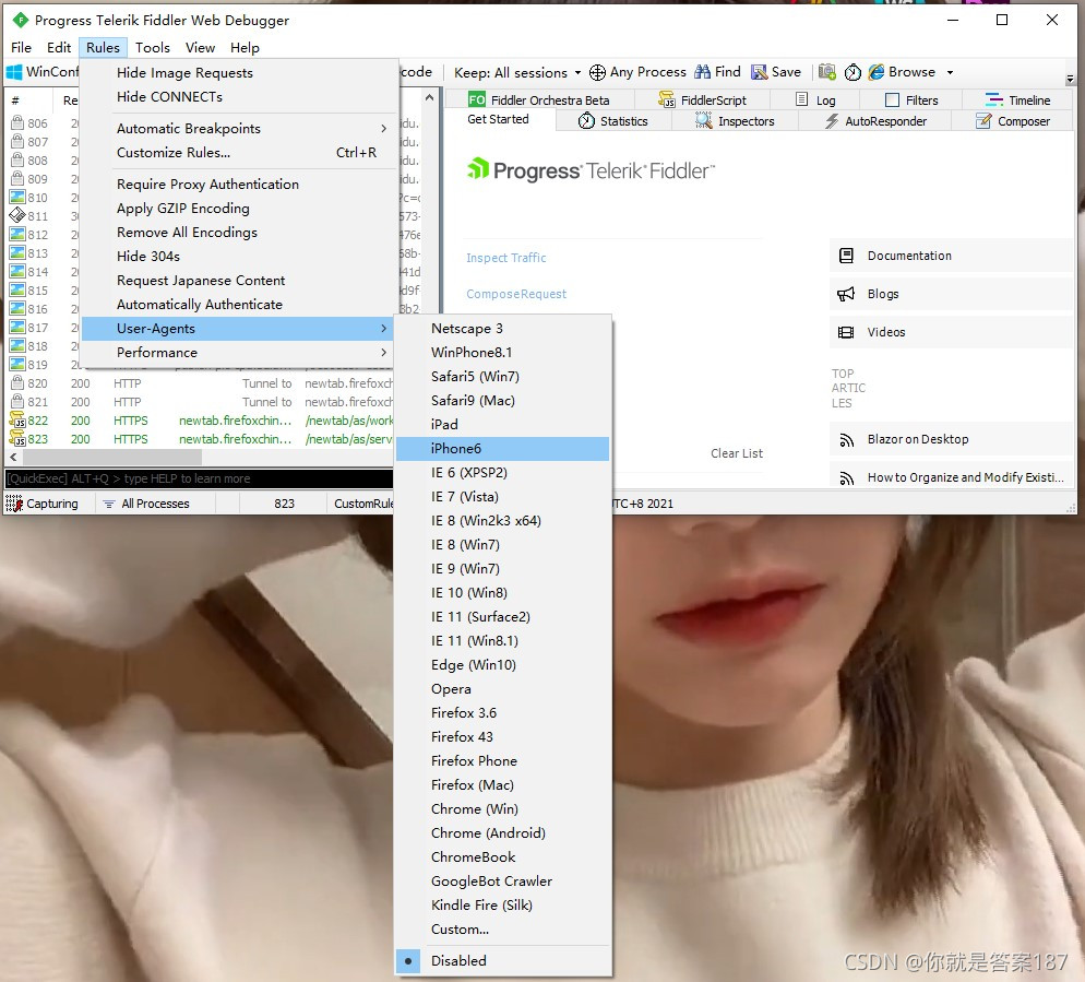 此刻,在Fiddler 4中,我们能够检视User-Agent的数值:
