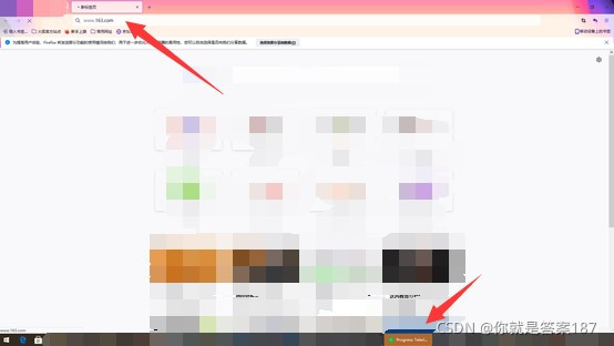 2、打开浏览器,输入 www.163.com ,这时候会注意到任务栏上的Fiddler 4 图标在闪烁,表明Fiddler已成功拦截了HTTP请求。